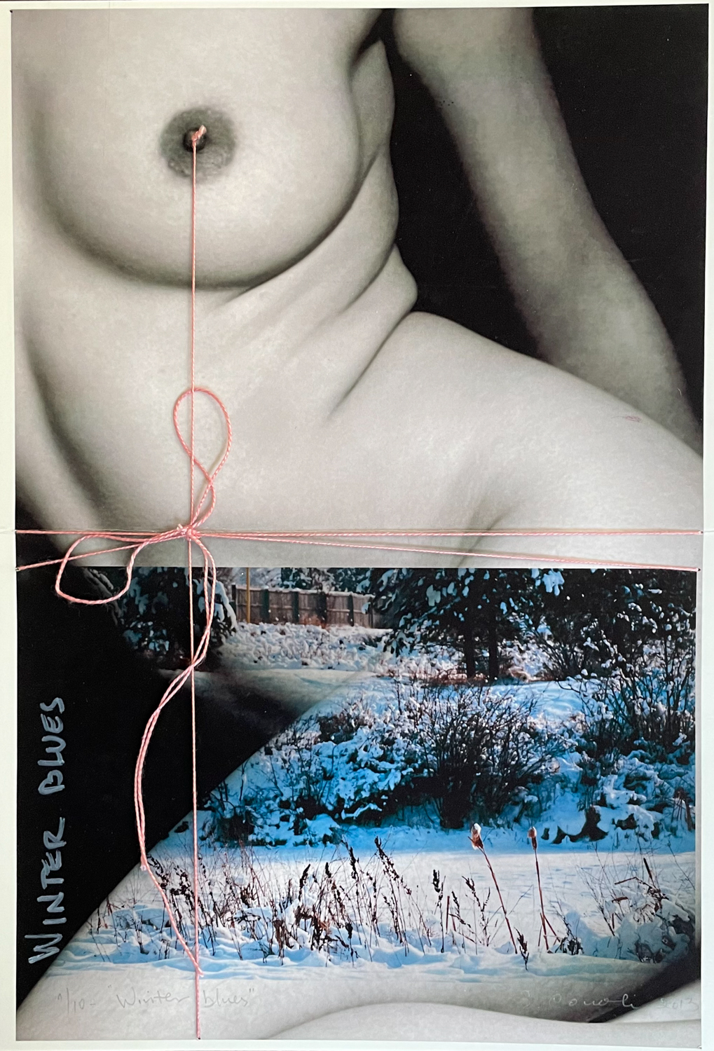 Trabajo con sobreposición de imágenes, tanto visuales como físicas y espaciales, para centrar la mirada del cuerpo desnudo femenino sobre líneas de paisajes anteriores a la pandemia. Este trabajo es un reciclaje del papel y de la imagen, pero también de la conciencia, limitada en el espacio físico y liberada al mismo tiempo de su asfixiante contexto: el cuerpo femenino como paisaje y el paisaje como espejo.